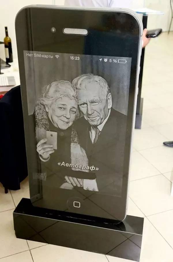 据介绍,这款别出心裁的墓碑采用乌克兰玄武岩为材料,表面被打磨得光滑无比,看起来真的具有iPhone玻璃屏幕的光泽,其T.A模仿手机花纹的部分则都是用激光雕刻而成的。另外,墓碑上""iPhone""的屏幕部分还可以用来放置照片和碑文,相当有创意。