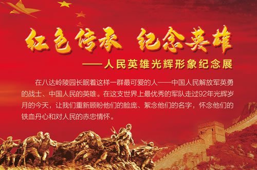 以“红色传承 纪念英雄”为主题的红色纪念主题文化展在八达岭陵园落成,数十位为中华民族的独立、自由、解放而贡献终生的人民英雄光辉形象在陵园里矗立起来,自此陵园系列文化建设又增添浓重一笔。